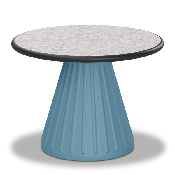 An eloquent evolution from a traditional table design, the Evvolve Junior Table offers the same safety and durability features as our Evvolve Table but utilizes size-appropriate dimensions for use in adolescent environments. Ribbed design details provide a neutral and comforting repetitive pattern while avoiding perceived two-dimensional imagery. The tapered base creates increased stability when ballasted and allows for easy cleaning.