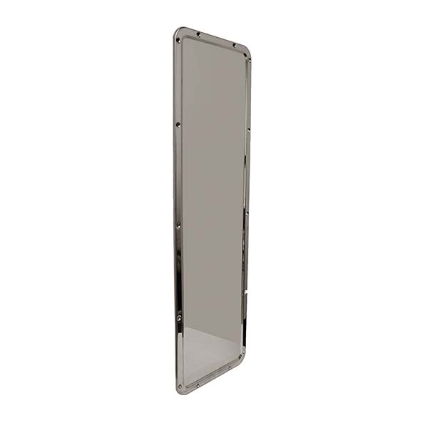 One-piece #304 stainless steel. Highly polished #8 finish. Three standard sizes: