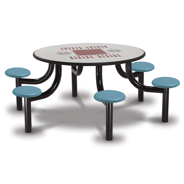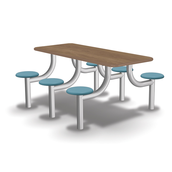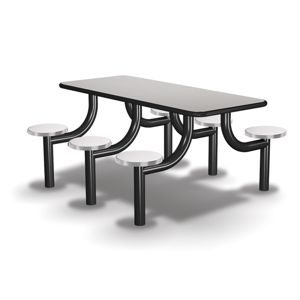 The Max-Master commercial furniture series by Norix is particularly well suited for dining halls and dayrooms where reliable performance is a must. Whether bolted to the floor or freestanding on adjustable glides, the distinctive individual seat/leg design provides superior stability than traditional pedestal tables. Compression molded composite seats, premium table top and unique steel leg design delivers an exceptional table for continuous daily use in challenging environments.