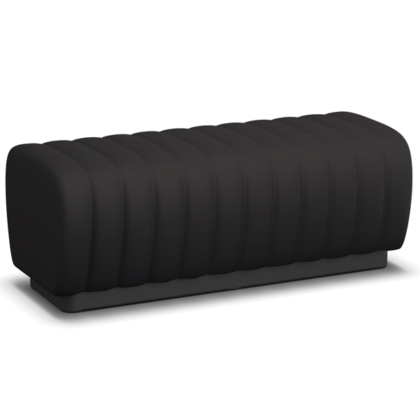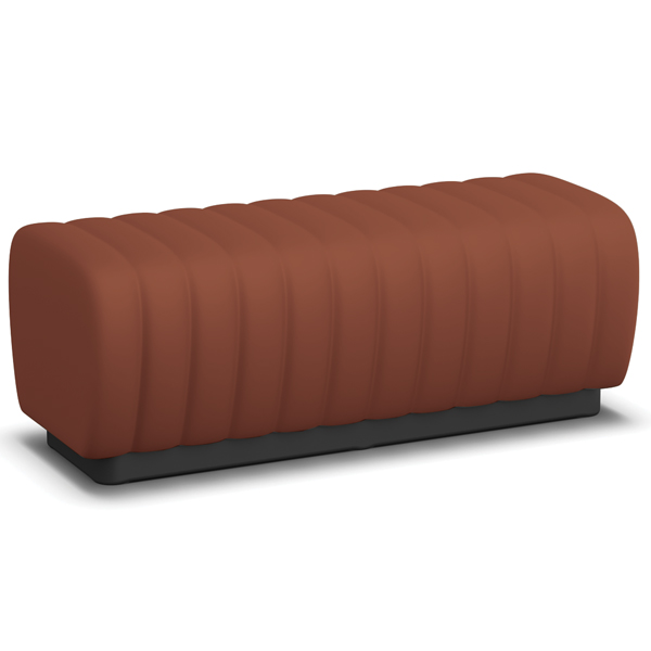The ripples transition to a smooth, zero-depth surface as the seat meets the back, eliminating corners and crevices where crumbs, dirt, or debris would otherwise accumulate. In high-traffic spaces like transitional housing, Ripple ottomans are group home furniture staples.