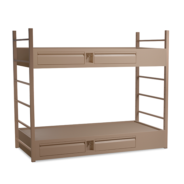 Available in Panel Base Bed, Bunkable Panel Base Bed and Panel Base Bunk. Steel deck, steel end frames for optional bunking. Ships K.D. Optional headboard, footboard, bunk-locking clamps, bottom closure panel, ladder and safety rails.