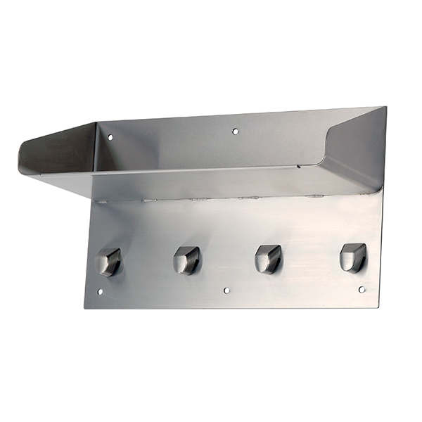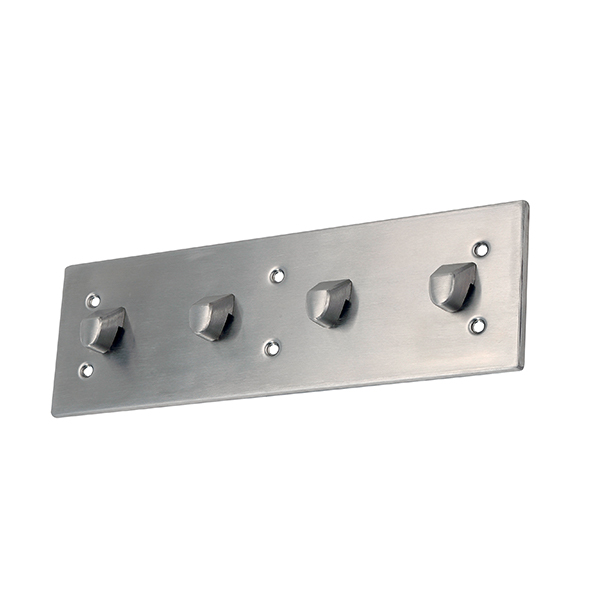 Holds towels or clothing articles safely without the use of protruding pegs or hooks. The surface mounted towel hooks come in stainless steel. Choose from single towel hooks or groups of four.